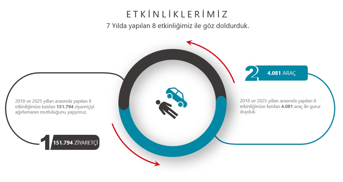 Aynı yıllar arasında yapılan 8 etkinlikte 4.081 araç katılımcılara sergilendi.